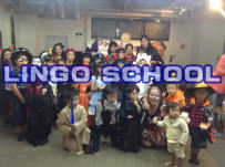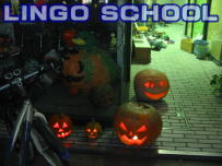 ハロウィーンの期間中はリンゴスクール一階に飾られています。是非夜に見に来て下さいね!